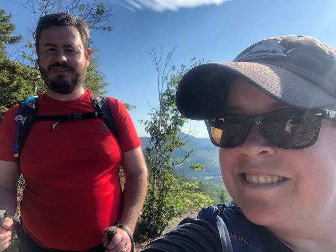 Actually, I was nervous. Steve has been running consistently all summer, but my time has been consumed by work for months on end. I wasn’t in as good shape as I was when climbing our first three high peaks (Cascade and Porter, and Giant) and I was just hoping I’d be able to summit. Anyway – we woke up at the crack of dawn and got ready to hit the trail. It was in the low 40*s, so I decided to wear yoga pants and a flannel. Steve went for mesh shorts and a tech t-shirt. We’d see which one of us was going to regret our life choices. (Spoiler: it me.)