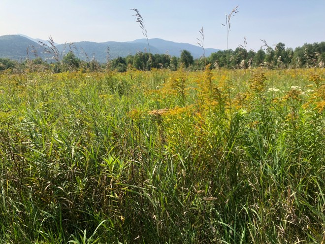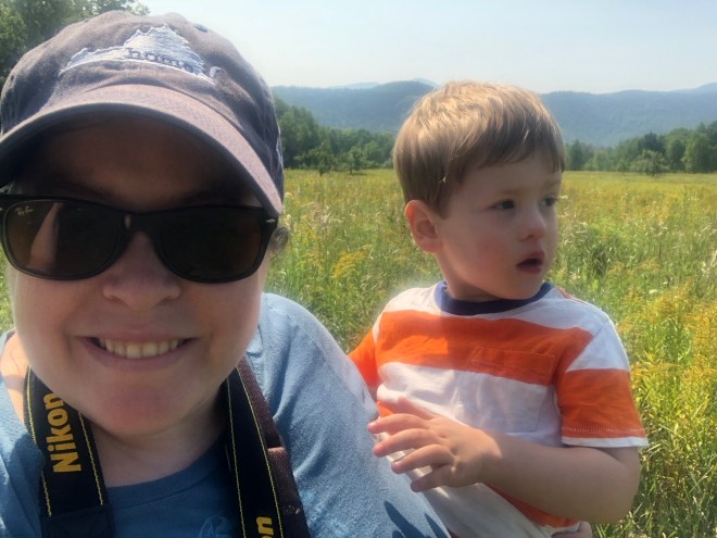 To distract Nugget from the effects of his fall, I pointed out the sights of the wooded connector trail – including a pretty mushroom growing out of a tree stump. Finally, we arrived at the meadow, and…
