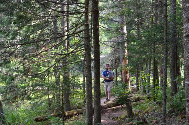 A certain tired guy hitched a ride in Dad’s arms. Couldn’t blame him – it had been a long week, and those little legs did an awful lot of hiking. I was proud of both kids for being such troopers on such an active vacation!