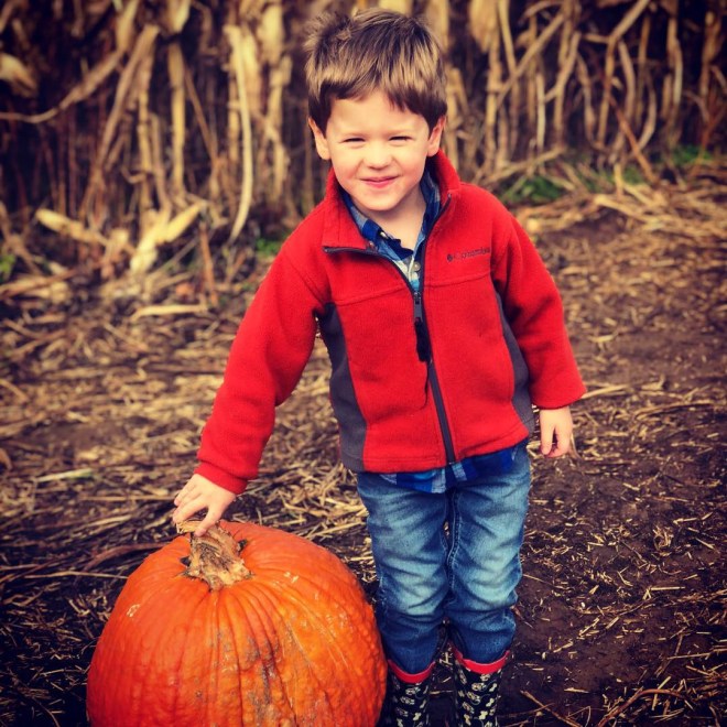 We loaded the pumpkins up – one for Peanut, one for Nugget, and one for Mommy and Daddy to share – into the wagon and dragged them back up the hill.