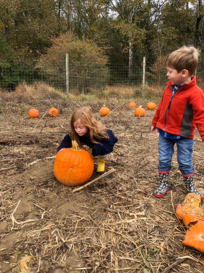Our Halloween festivities kicked off on the Sunday before the holiday.  In other years I might have tried to do something in the run-up to the day itself, but between job transitions and general life stuff, pumpkin picking and carving was all I had the energy to do before Halloween.  That was plenty for the kids, though.  We talked about driving up to Maryland and checking out the festivities at Butler’s Orchard, but ultimately decided to stick with the more low-key Wegmeyer Farms in Loudoun County, Virginia.  We got our pumpkins there and loved the relaxed atmosphere and rolling fields.