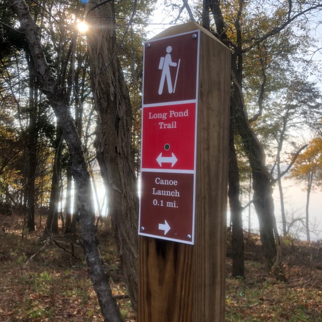 It’s pretty much become a tradition that we celebrate birthdays on the trails. I think that in the past year, every single member of the family has had a birthday hike, and November was Steve’s turn. With all the choices in the world – well, all the choices in northern Virginia, the District of Columbia, and the close-in Maryland suburbs, anyway – he picked Widewater State Park, a brand new addition to the Virginia state park system (as in, Governor Northam officially opened it eight days before we put boots on the trail).