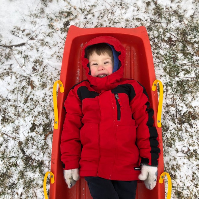 For all I have tried not to press gender norms on you, you are 100% boy.  You love trucks – fire engines, still, and construction vehicles – and boats, climbing on everything, pushing your sister’s buttons, riding your bike, and being attached to my side every moment of the day.  You are a gigantic mama’s boy, and I LOVE it.