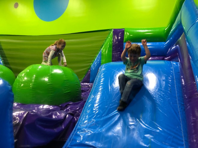 You are SO looking forward to your birthday party at Pump It Up! this weekend.  You’ve been dreaming of this day for months, even before you’d been there yourself.  We walked into a birthday party at the very swank Army Navy Club a couple of months ago, and you looked around at the grand staircase and chirped hopefully, “I think this is Pump It Up!”  It wasn’t, but you got to go the next day (accompanying your sister to a birthday party for one of her friends) and soon you’ll get to sit in the inflatable throne yourself, and I know you’re going to be just gleeful about it.  I can’t wait to watch.