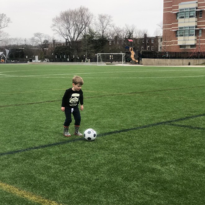 You’re sports crazy, and you love working off your puppy energy by kicking a soccer ball all around the field near our house.  You’ve also gotten very interested in football, and Daddy finally has a buddy to watch his beloved Bills with.  You have to wear your Bills jersey almost every weekend, so I guess that’s it.  The next battlefield will be baseball, and this is important: do not listen to Daddy.  This is a Nationals household.