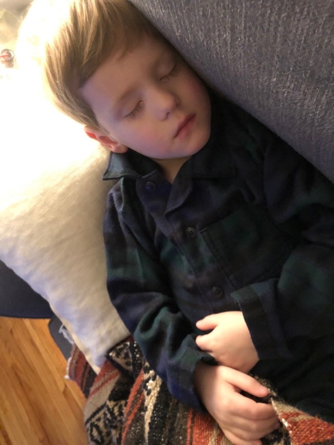 I think we disagree on one fundamental point.  You see, you think you’re all grown up, and I think you’re still a baby.  When I see you running and jumping and climbing, racing down the hall at school into your classroom, or watching Jurassic World without batting an eye even during the scariest parts, I have to concede that you do have a point… maybe.  But then you fall asleep like this…