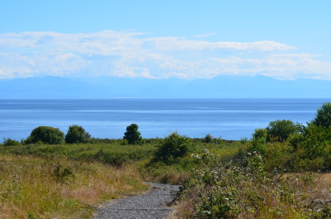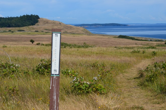 The South Beach Trail turned out to be a trail through a gorgeous open meadow, with sweeping vistas across the water, all the way to the Olympic Mountains.