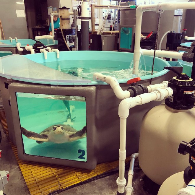 The highlight of this aquarium, though, was seeing the sea turtle rescue and rehabilitation center. I had no idea this was a thing the North Carolina Aquarium operates, so it was a total surprise and delight to walk through the doors and watch the wildlife rehabilitators at work.