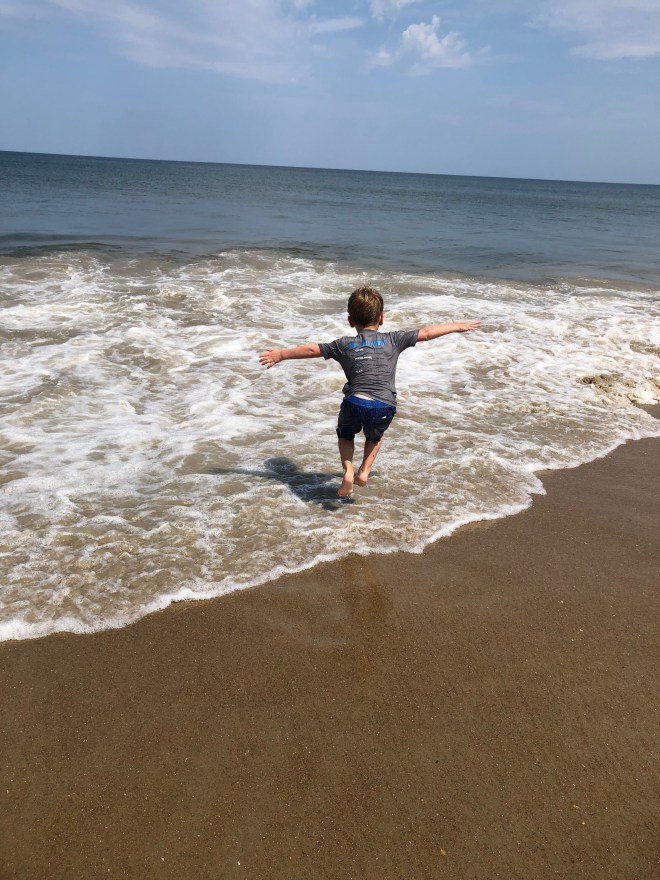 Duck Beach was a long, beautiful strip of pristine white sand, dotted with colorful umbrellas. The one downside to vacationing in Duck, we found, was that there was no public access to the beach – if you couldn’t walk to an access point for your neighborhood, you were pretty much out of luck. Unlike in Frisco, where we stay with my parents, there is no public parking or beach access. But we had a beach access point for our neighborhood about a half mile’s walk from the house, which was very easy – and the upside to the beach not being as accessible as some others was that it was a lot cleaner. I barely saw a speck of trash on the ocean beach all week, and the water was clean and fresh. I’ll take that bargain!