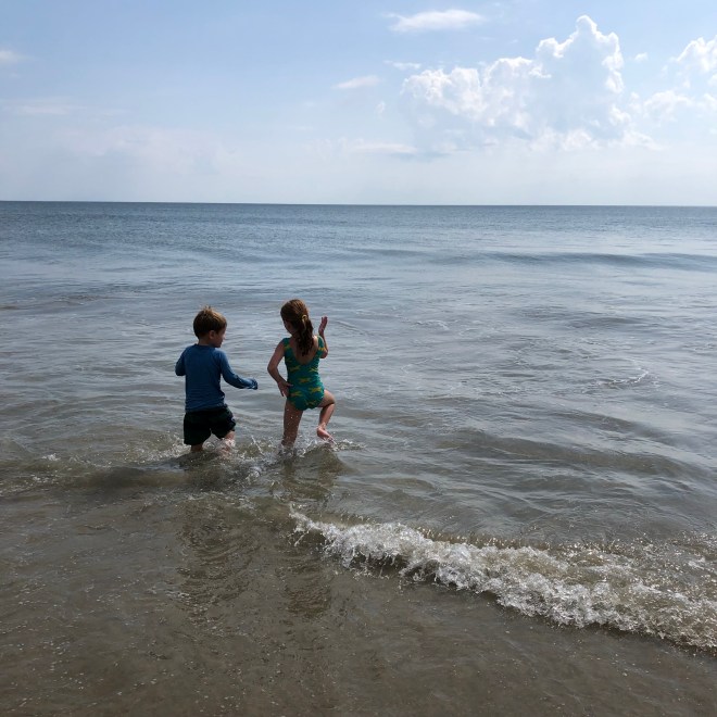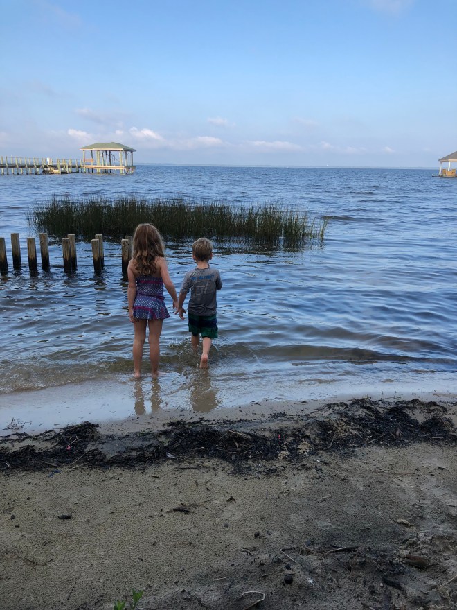 The kids spent a decent amount of time splashing in the warm, shallow sound waters, while Mom took in the views (and picked up trash from the beach, because I have to be me).