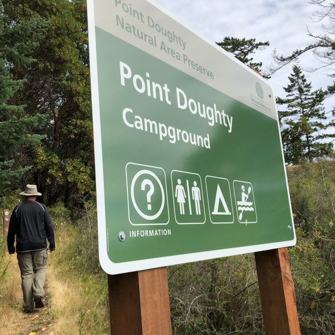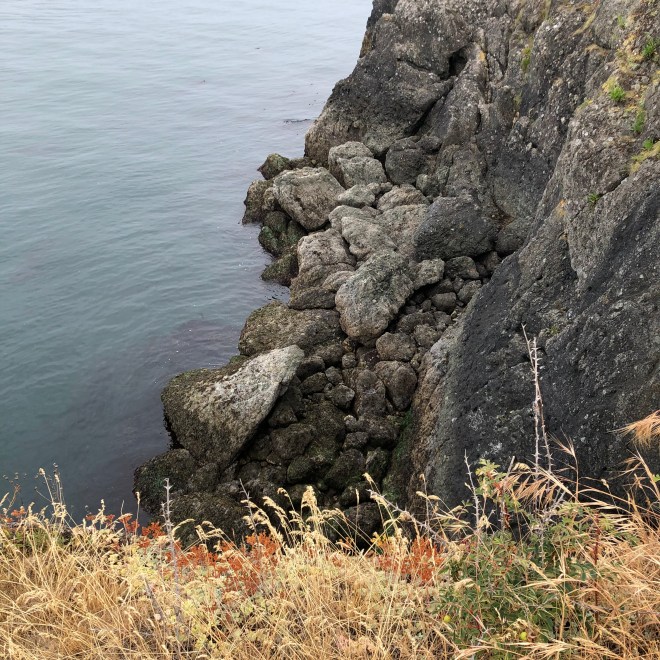 We discovered that the hilltop at Point Doughty is the best birding spot ever – a perfect confluence of shore birds, cliff-dwellers, and woodland birds. We probably saw a dozen different species.