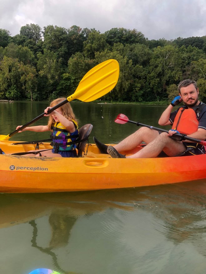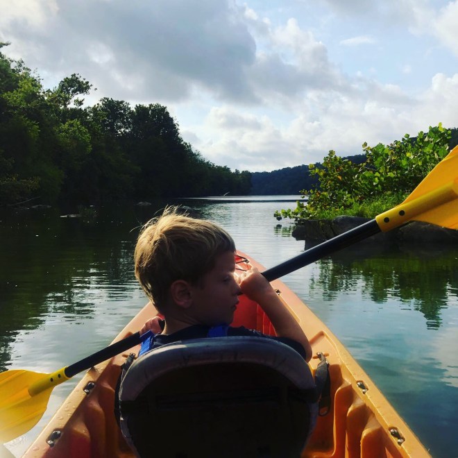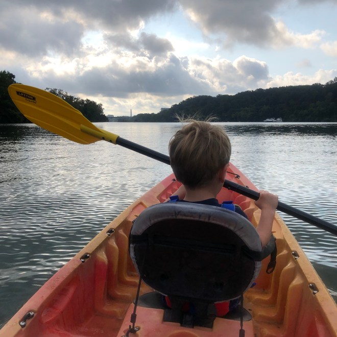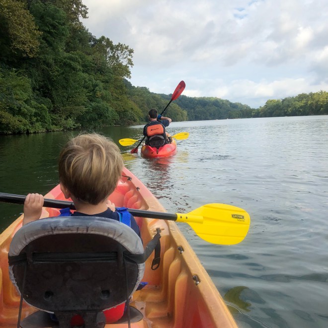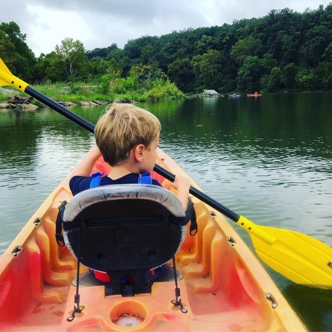 A bit belated, since it’s already fall, but I wanted to share a few snaps from our recent (ish… it was Labor Day) family paddle out on the Potomac. Steve and I had been talking about how we hadn’t been out on the water since we got back from the San Juans, and we were both jealously eyeing the kayakers and canoeists out on Lake Burke during our family hike there over Labor Day weekend, and we decided a family paddle was in order as soon as possible. We’d initially planned to go to Lake Anna on Labor Day, but swimming was prohibited due to a harmful algae bloom (yuck, and also, what are we doing to this planet?). So we quickly shifted plans and headed to our favorite local kayaking spot – Fletcher’s Cove.