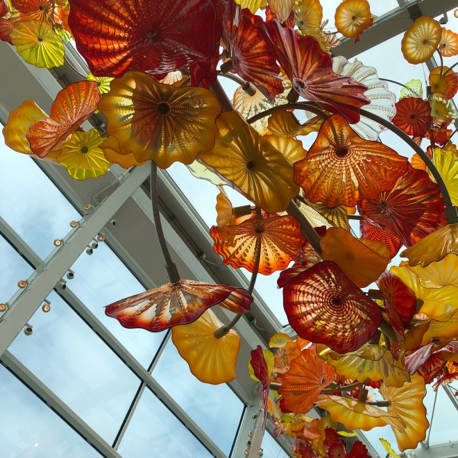I was vaguely aware of Dale Chihuly, and he’s such an iconic artist in the PNW, that taking in his work over the course of a morning seemed like just the thing to do. But I didn’t know what to expect at all – I really wasn’t familiar with his art, although I had the idea I might have seen some of it in Boston once? – and I was blown away by the fanciful glass creations and stunning large-scale installations.