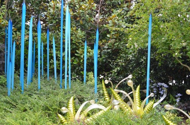 Modern art isn’t my thing, at least not quite as much, but one contemporary trend I love is the juxtaposition between bright colors and natural elements. The Chihuly Garden had that in spades.
