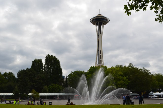 After we’d gotten our fill of modern art, we wandered out into the rest of the Seattle Center. Obviously, we spent plenty of time goggling at the Space Needle.