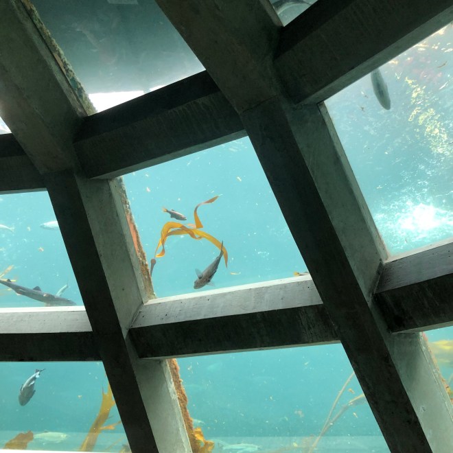 Starting with – the aquarium! After a morning navigating the jam-packed Chihuly Garden and Glasshouse and the rest of Seattle Center, Steve suggested we check out the aquarium. It felt a little weird to visit an aquarium without the kiddos in tow, but I think we were both missing the intertidal zone. So we headed over to the aquarium, had some delicious veggie chowder in a sourdough bread bowl, and checked out the sea life.