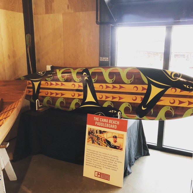 This incredible handmade wooden paddleboard with an orca totem detail and a great backstory.