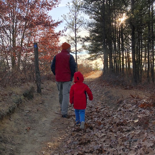 It was just Steve, me, and the little dude this time. Peanut is the latest victim of the disgusting chest cold that Nugget brought home from school and has been passing around the family, so she stayed home with Nana to rest and recover. Also – lest you think that all of our family hikes are perfect – you should know that Nugget screamed to be picked up the entire time. We’ve gotten out of the habit of hiking, thanks to a busy summer and fall, and both kids have started complaining vociferously on the few hikes we have been able to fit in recently. We ignored him and he finally stopped complaining and just hiked sullenly along with about five minutes left of trail.