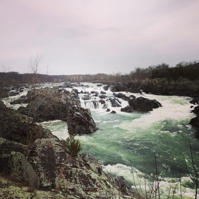 While you’d never be able to tell from this picture (which looks COLD!) it was seventy degrees in NoVA this weekend.  Seventy! Degrees! In! January!  Totally wild.  And while I usually freak out about climate change anytime it’s unseasonably warm, this time I tried to relax and remind myself that we have always had one or two midwinter thaws for as long as I’ve lived here.  So we got outside a lot this weekend, and enjoyed every second.  On Saturday, we headed to Great Falls Park for a hike – us and what felt like everyone else in the greater D.C. area.  It was a beautiful day and people were definitely enjoying the park.  We saw plenty of wildlife, though – ducks, cardinals, vultures, geese, and the elusive Peanut-In-Jeans.  Still in search of fresh air, after we got home we walked down to the waterfront, meandered around for a bit, and then took the trolley back up the street and had dinner at Hank’s Oyster Bar.  (Steve recently remarked that since we’re moving out of the neighborhood this year, we should make it a point to frequent our favorite spots while they’re still walking distance.  Not that we can’t pile into the car and drive over from McLean or Arlington or Fairfax or Oakton or Great Falls or wherever we land, but it won’t be quite as easy.)