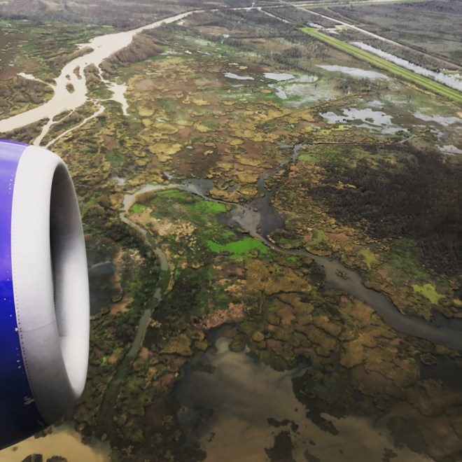 Hello from the Big Easy.  Laissez le bons temps rouler!  I’m here on business all week – so for those of you who are enjoying a holiday Monday off work right now, I salute you and hope you have a wonderful day, but I’m working and what’s more, I was working yesterday, too.  I’m at a week-long trial advocacy training conference that I know is going to be a wonderful and valuable experience, and I get to explore New Orleans a little bit in my very limited free time, so that’s going to be fun.  I got in yesterday morning at 8:30 a.m. local time – yes, that meant a 6:30 a.m. flight out of D.C.  #yawn.  So far the highlight has definitely been flying in over the bayou.  Wish I could get out and explore it, but that’s definitely not going to happen!  So – anyway – it wasn’t much of a weekend.  On Friday night Steve and I were able to escape for a date night, which was fun, but we mostly discussed our ongoing frustrations with our kids’ school situation, which was not fun.  Saturday was just a bumming around the house kind of day.  Steve spent most of the day hauling things out of the basement.  Long story, but our landlords’ aged and decrepit washing machine overflowed and flooded the basement.  Steve thought: no probs, we’ll just use our own washer that we’ve moved from house to house.  Well!  It didn’t survive the last move, and is even deader than the ancient model that came with our rental.  So, not great, but just the kick in the pants we needed to really apply ourselves to cleaning the basement.  While Steve worked on his portion of the job (hauling, moving, etc.) I spent the day breaking up bickering matches between the kids, who seemed determined to make it reeeeeeeally easy for me to leave on a business trip the next day.  And then – leave I did, at zero dark thirty, and have been holed up in a hotel near the New Orleans convention center in lectures and mock trials ever since.