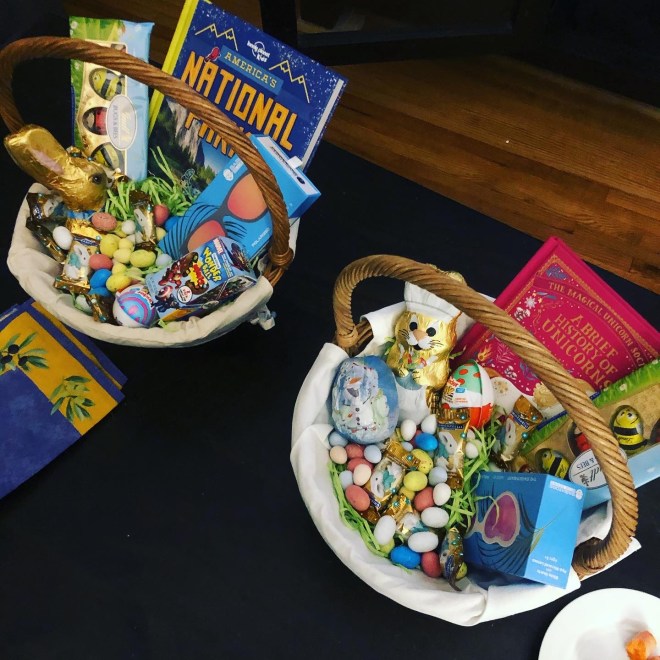 Morning, Peeps. Happy new week, happy Easter Monday, and happy Passover to those celebrating. How were your weekends? Ours was pretty much as usual in these weird times. Saturday was a big day – are you ready for this? I left the house three times. Can you even believe it? I went (1) to the grocery store; (2) for a family hike at a nearby nature preserve; and (3) for an afternoon run. Look at me go! The rest of the day was spent bumming around, not doing much of anything – par for the course, these days. Sunday was Easter and we started it in our usual fashion – the kids went tearing downstairs and spent approximately 30 seconds ripping apart the baskets that I painstakingly assembled on Saturday night. What was different? We didn’t dress up, go to church, or do the Easter egg hunt in the churchyard. (Of course, I missed the egg hunt last year too, because a certain child – name withheld to protect the guilty – had a tantrum in church and had to be dragged home screaming, good times.) The rest of the day was more of the same stuff as usual – we got out for a family walk to the waterfront, where Peanut parked in the grass and read to us out of her new unicorn book (courtesy of the Easter Bunny, a.k.a. ME) and Nugget ran around like a maniac to work off his excess energy. They both crashed early, and so did I.