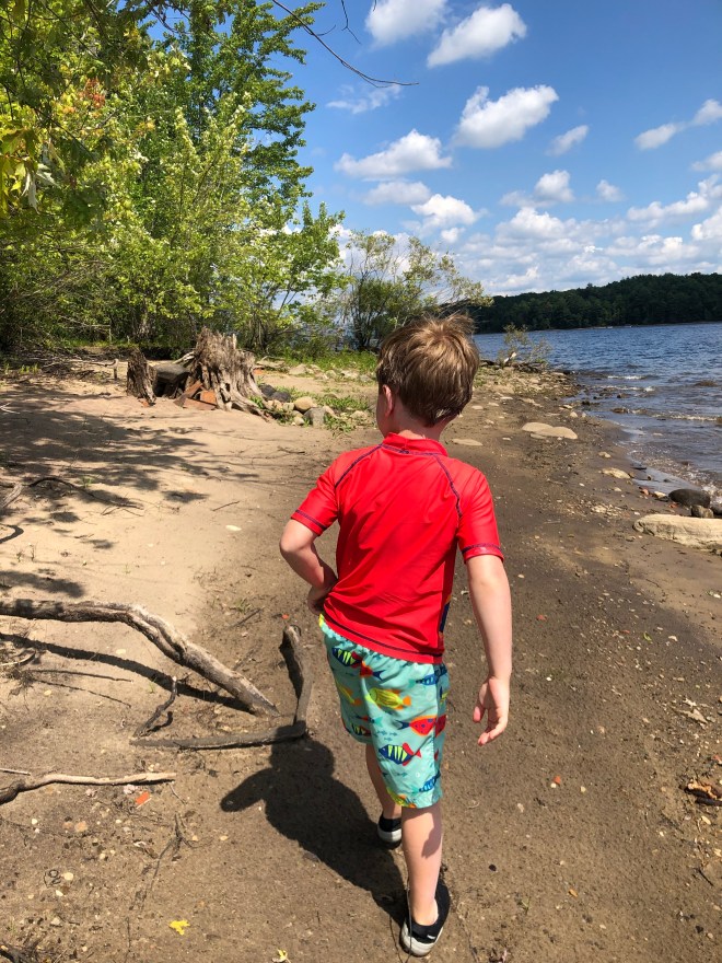 Dad landed first and pulled us ashore. Nugget immediately hopped out of the boat and set off on a hike into the brush (note: this is a very small island) while Steve and I followed behind him shouting things like “WATCH OUT FOR POISON IVY” (me) and “THERE IS GOOSE POOP LITERALLY EVERYWHERE” (Steve).