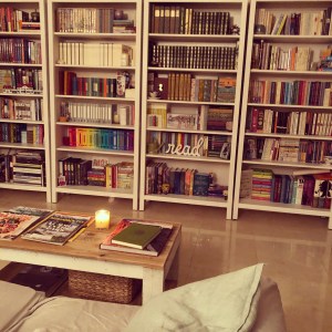 Loving. Two bookish things to tell you this week: first, I finished unpacking and organizing my bookshelves, and my reading area is coming together! I have a few books that are going into overflow shelving in the family room, but other than that – it’s all done, and doesn’t she look good? I spent Saturday night reading on the couch with a candle and a glass of wine, and it was everything.