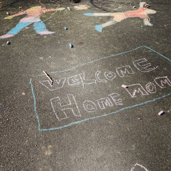Yawwwwwwwn. G’morning. How were your weekends? Bit of a blah one over here, although the weather was spectacular. I ended up working for big chunks of both Saturday and Sunday – just one of those things. On Sunday I had to visit a client site, which is unusual but not unheard of for a weekend day, and on Saturday I was busily trying to make headway on a few other things. I don’t mind working on the weekends – especially when, as this weekend, I have things that I really need to get done. (Steve once had a job in which he often had to work weekends just because some unnamed person above him in the food chain would decide “I feel like I want people working this weekend” – and that, I never appreciated. Fortunately, that’s never been my experience.) What frustrated about this working weekend was that, as frantically as I hacked away at my stack of work, it didn’t shrink any and I’m still behind the eight ball this week. But at least I came home from my Sunday work to an adorable welcome home note in the driveway!