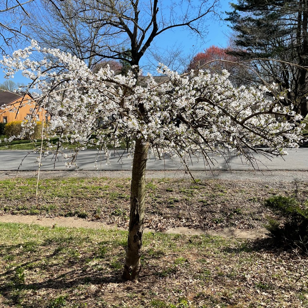 • Ooooooh, it might be a snow fountain cherry! The blossoms don’t look like the cherry blossoms I am familiar with here, which is why I guessed serviceberry. But I just googled snow fountain cherry, and that’s a definite contender. Thanks!! πŸ™‚