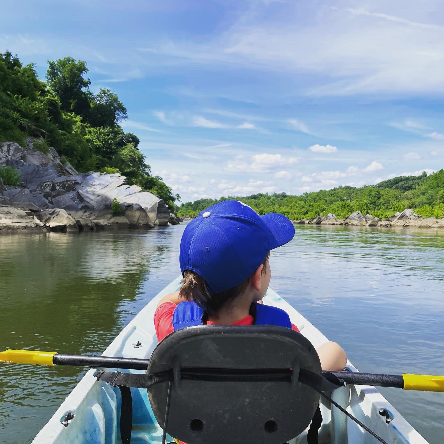 Anyway! On Saturday morning I was up early to squeeze in a couple of miles in my running shoes before the day really got started. I’m in the middle of a few challenges that have me running a lot, and I love it. (I’ve read that the more you run, the more you want to run, and the less you run, the less you want to run – and I definitely think that’s true. I’m on a streak of running 5+ days per week, which is definitely too much, but I am enjoying it so much that I don’t want to stop.) I got home with just enough time to shower and throw on real clothes, and then Peanut and I headed out to a play date with her BFF, S. S and her family recently (well, not that recently – a year ago, so “pandemic recently”) moved into an adorable house in Arlington, and we hadn’t seen it yet, so Saturday was the day. We spent several hours there – the girls rushed off to play Barbies and watch “Gamer Girl,” while S’s mom – my pal Rachel – led me on a tour of the house (while I gasped at everything; it is an absolutely beautiful house!), after which we caught up over La Croix and broccoli quiche. Peanut is definitely old enough that I could just drop her off, but I never will. I think Rachel and I may have had more fun than the girls, which is saying something. Anyway – we reluctantly tore ourselves away mid-afternoon and met back up with our boys for kayaking. Nugget is into racing right now, which I hate. He spends the whole time yelling at me to paddle faster.
