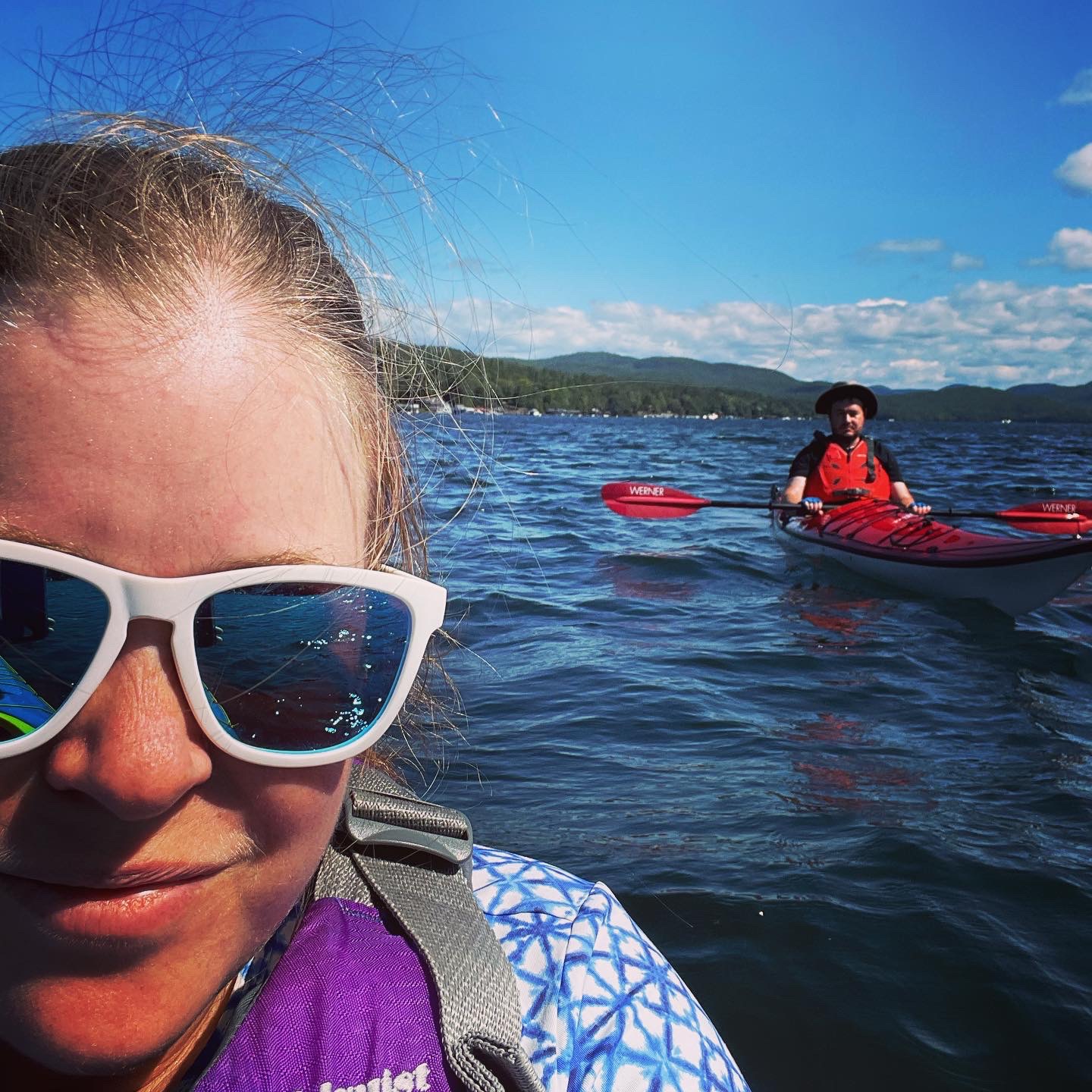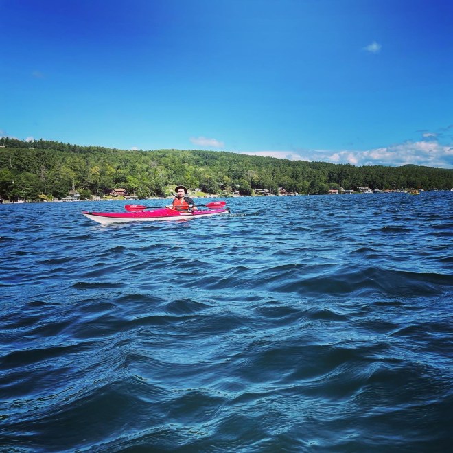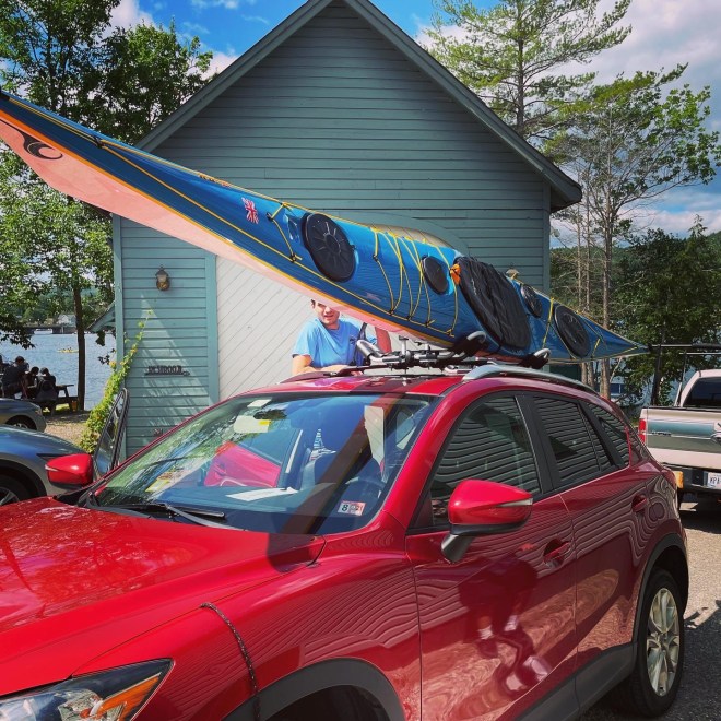 We hiked a lot, and I got my prodigious paddling energies out via my paddleboard – a Christmas gift from Steve. When we decided to spend a few weeks hanging out and working in upstate New York over the summer, I half-heartedly researched boathouses in the Adirondacks – but I figured if I was striking out all around the Chesapeake, the Adirondacks would be more of the same. Until… I called over to a boathouse with locations in Saratoga and Old Forge, and learned that they had Current Designs models – including the Solstice GT, which Steve was pretty sure he wanted, and the Solstice GTS (the low-volume version) and Equinox (a slightly shorter Solstice) – that I was interested in trying out. We knew we couldn’t ask them to hold the models, so we crossed our fingers extra-tightly that they would still have what we were already thinking of as “our” boats in stock by the time we were able to get to the boathouse.