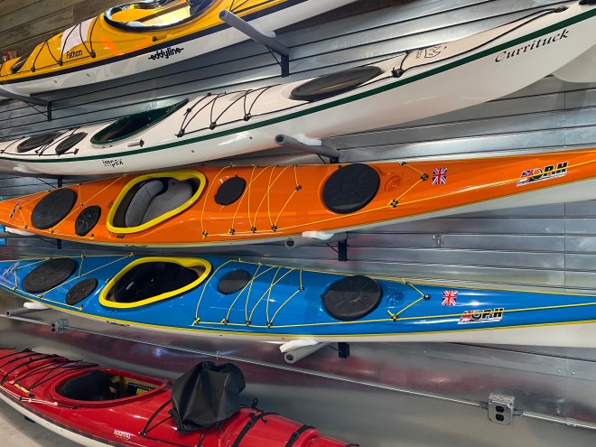 Over the next few months, we discussed what we wanted in our hypothetical kayaks. We quickly agreed that we didn’t want recreational kayaks. We both wanted to stretch our paddling skills and pick up new techniques, and we wanted more efficient paddling machines that would be our allies in our goal to paddle bigger water and make distance. (No shade to recreational kayaks, which are a great option – just not for us.) I dove into the research and sent Steve a long email detailing what I thought we were looking for in the kayaks we wanted; a few brands and models that I thought would suit each of us particularly well; and a list of places to paddle nearby when we finally did make the purchase. He took my list as a starting point for his own research, and he started forming his opinions about what boats he was interested in trying out, as soon as the weather warmed up a bit.