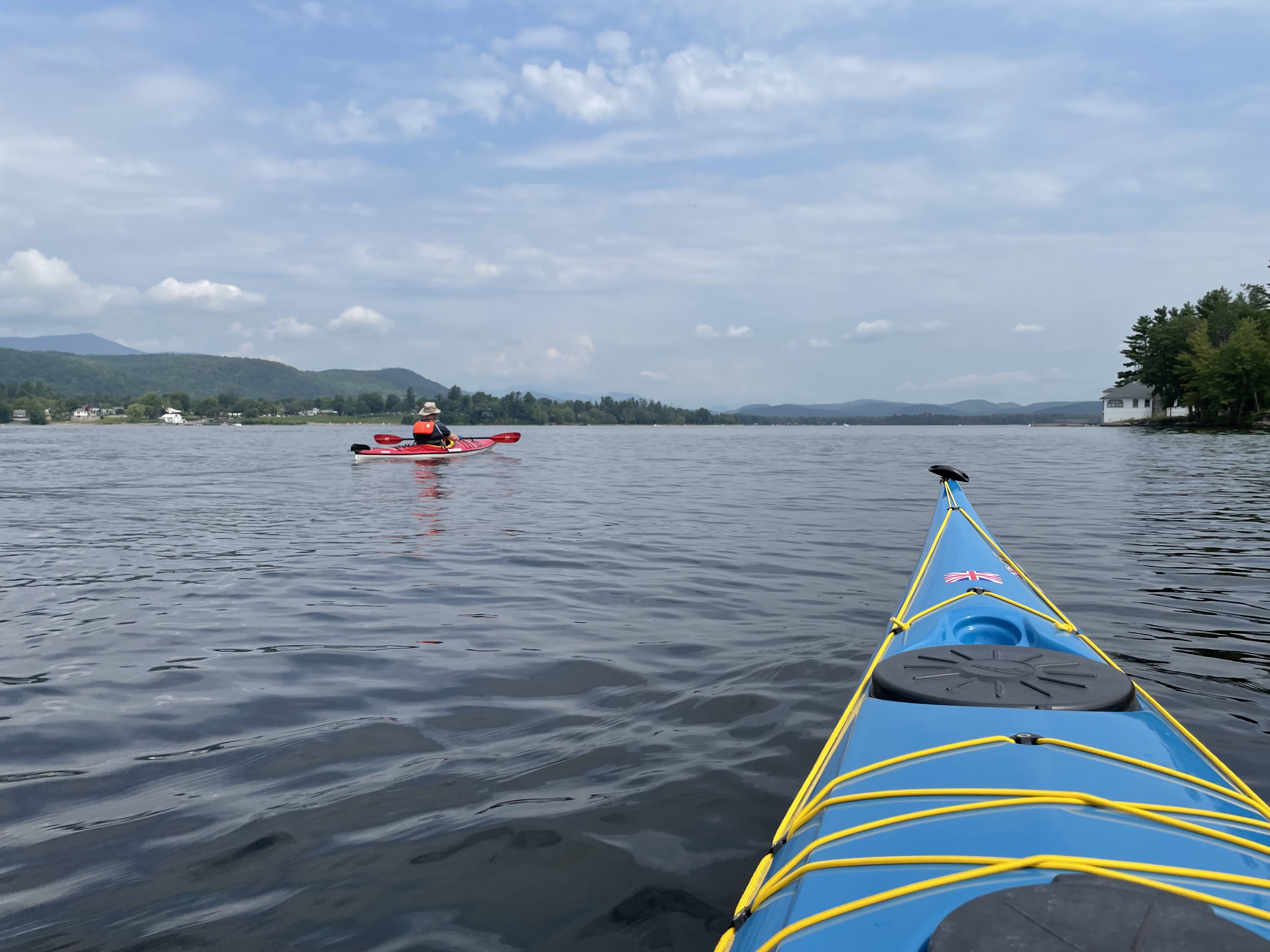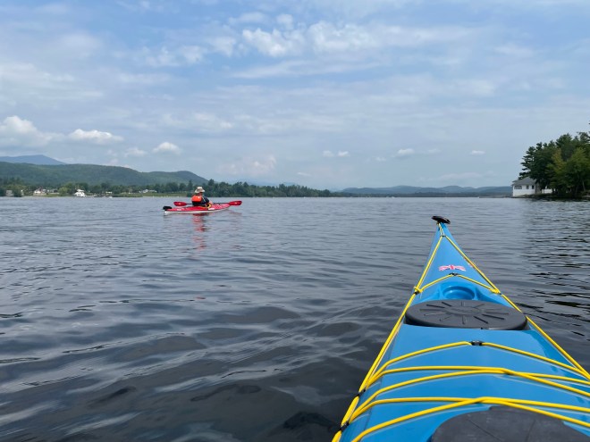 We were absolutely giddy to be out cruising the Adirondack waters in the touring kayaks we’d dreamed of for over a year. And something else occurred to me – “Do you realize,” I called to Steve, “that every time we leave the kids with my parents, it’s to go kayaking?” The San Juan Islands in 2019; cruising the Potomac in 2020; now we were planning a week of Adirondack lakes (and a big kayaking adventure in 2022, pandemic permitting).