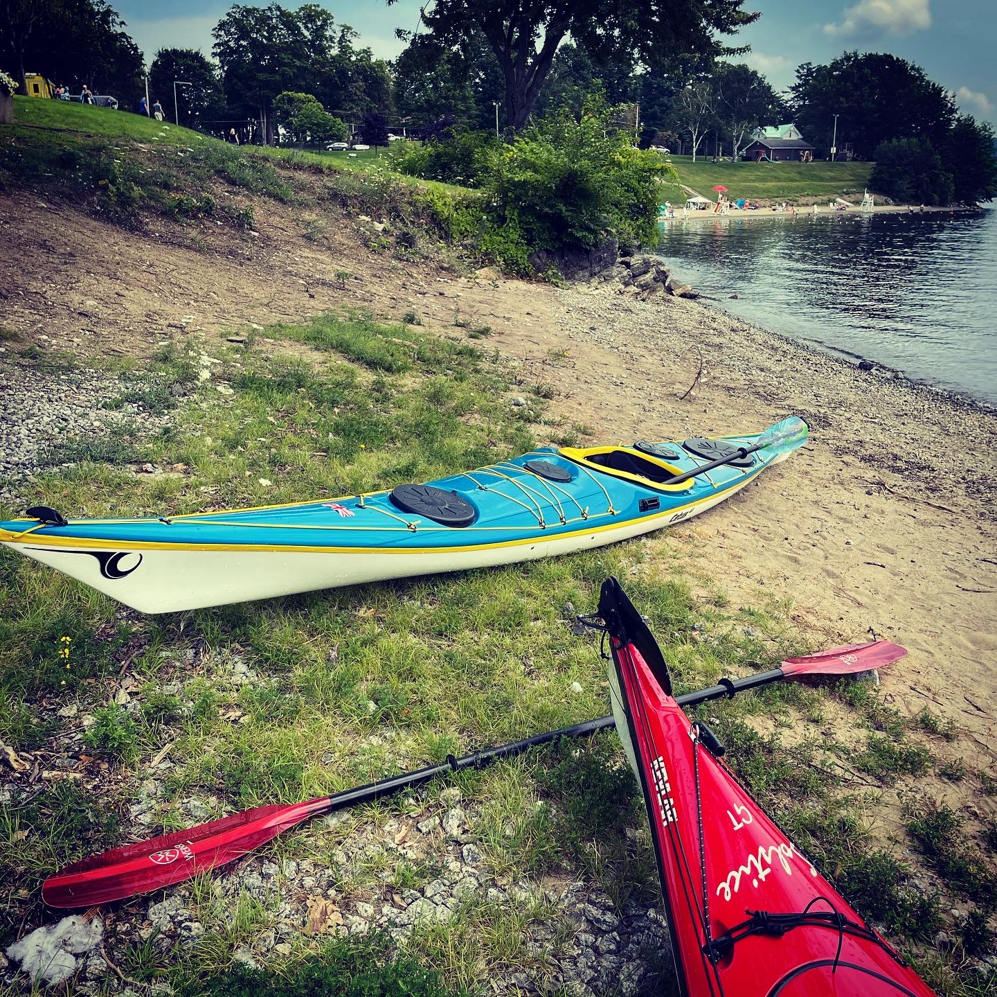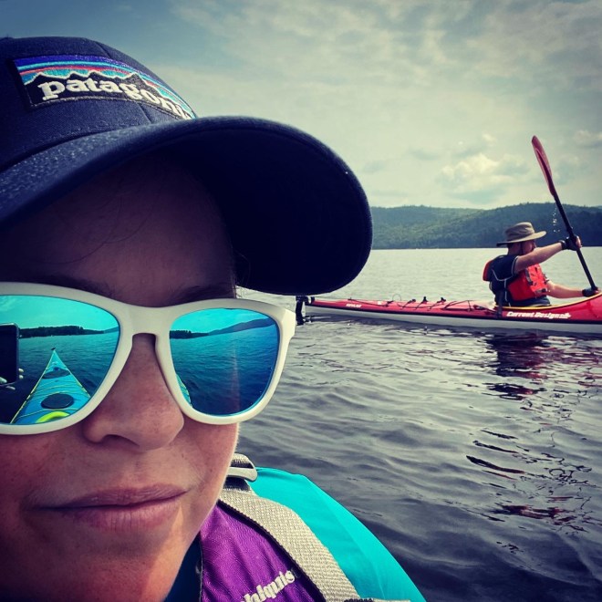 We rolled into the Schroon Lake boat launch and tackled the intimidating task of getting 17-foot touring kayaks off our car for the first time; they’d been hanging out on the roof since we rolled out of Lake George, but it was time. It was a bit of a comedy of errors, and we were both drenched in sweat by the time we got them off the car and onto the grass – but we did it! (Insert strong-arm emoji here.) A once-over from the Schroon Lake boat steward, and we were on our way.