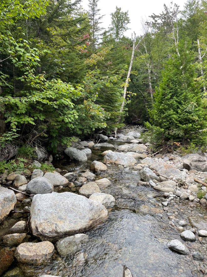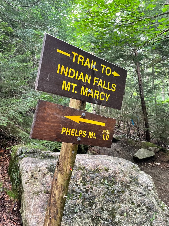 We arrived at the Loj with plenty of parking spaces still available – a good omen. After a few minutes of chatting with one of the local park stewards, we set off on the first – flat! – portion of the hike, through the woods to Marcy Dam.
