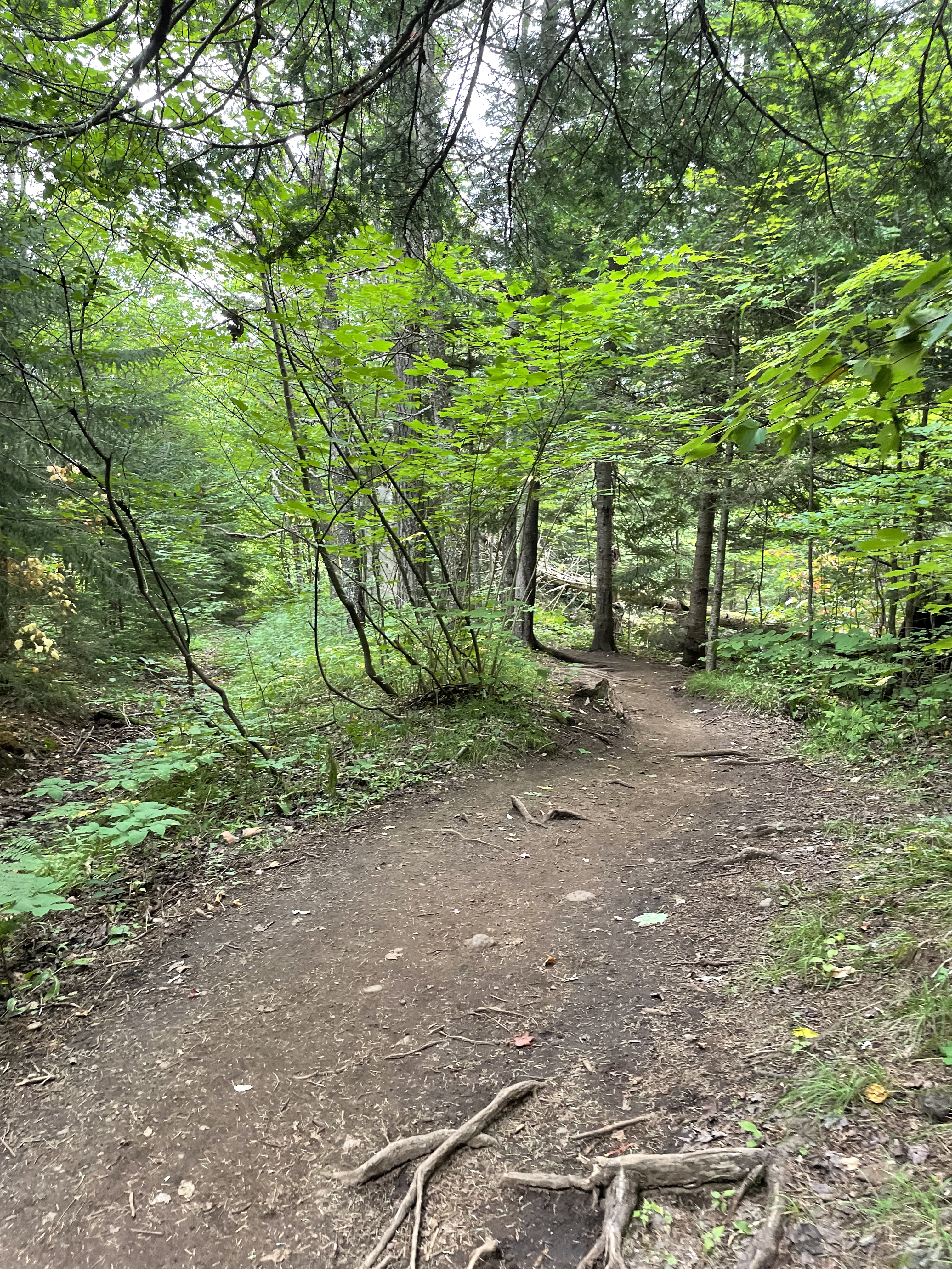 I hiked along at a fast clip (about the same speed as a neighborhood walk, which is lightning for an Adirondack hike) and marveled at how easy it felt so far. Figuring it wouldn’t last, I made up my mind to enjoy the gently rolling groomed trails while I could.