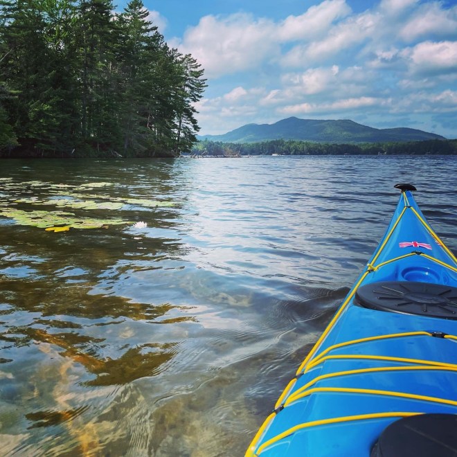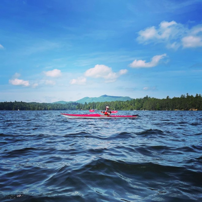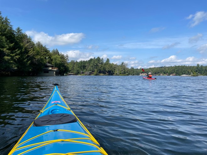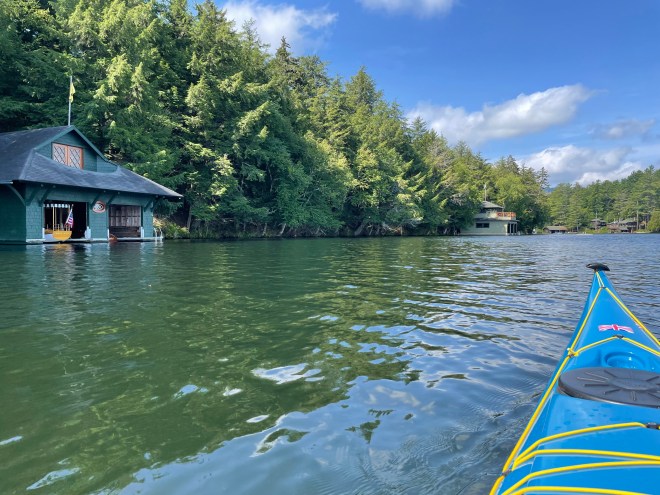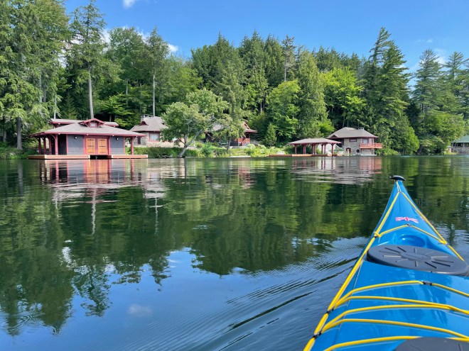 You all know how it worked out – we left the Lake George Kayak Company with two gorgeous new boats lashed to the roof of our car and immediately started planning a week’s worth of paddling. I told Steve that Upper St. Regis and Spitfire were my top priority – billed as the perfect combination of pristine, unspoilt nature and classic Adirondack architecture. We agreed to save the two lakes (which are connected by an inlet) for a special morning’s paddle on our sixteenth anniversary.