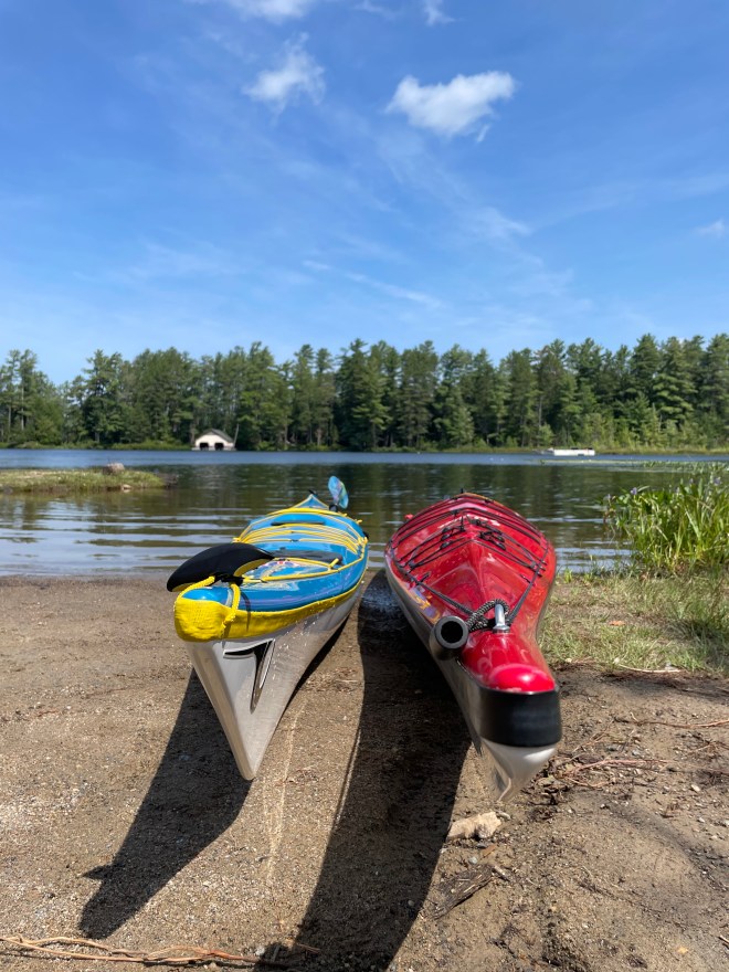 When Steve and I first started to entertain the possibility that we might be able to pick up our fifteenth-anniversary touring kayaks while up in the Adirondacks over the summer, I started making a list of places to paddle if we actually managed to get the long dreamed-of boats. I stopped list-making almost immediately, realizing that if I got too invested in dreaming of paddling spots, it would prove an irresistible temptation to Fate and we might never get kayaks. But list or no list, one Adirondack paddling destination was stuck in my mind – Upper St. Regis and Spitfire Lakes. If we did have something to paddle, this was the top of my list.