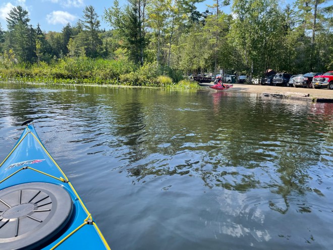 There is only one public launch spot on Upper St. Regis, and none on Spitfire, so we had our route pretty much set. We launched in the secluded little bay reserved for public car-top boats, and paddled out onto the open lake.