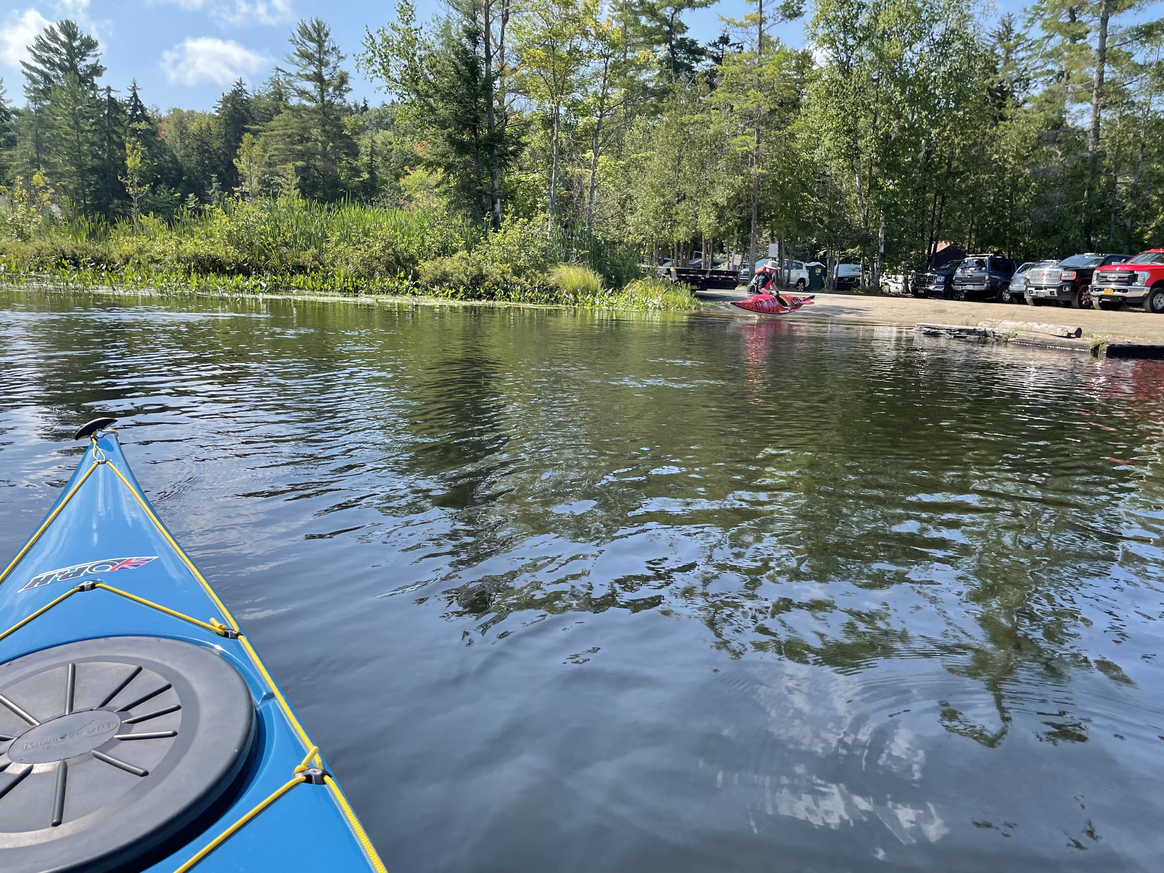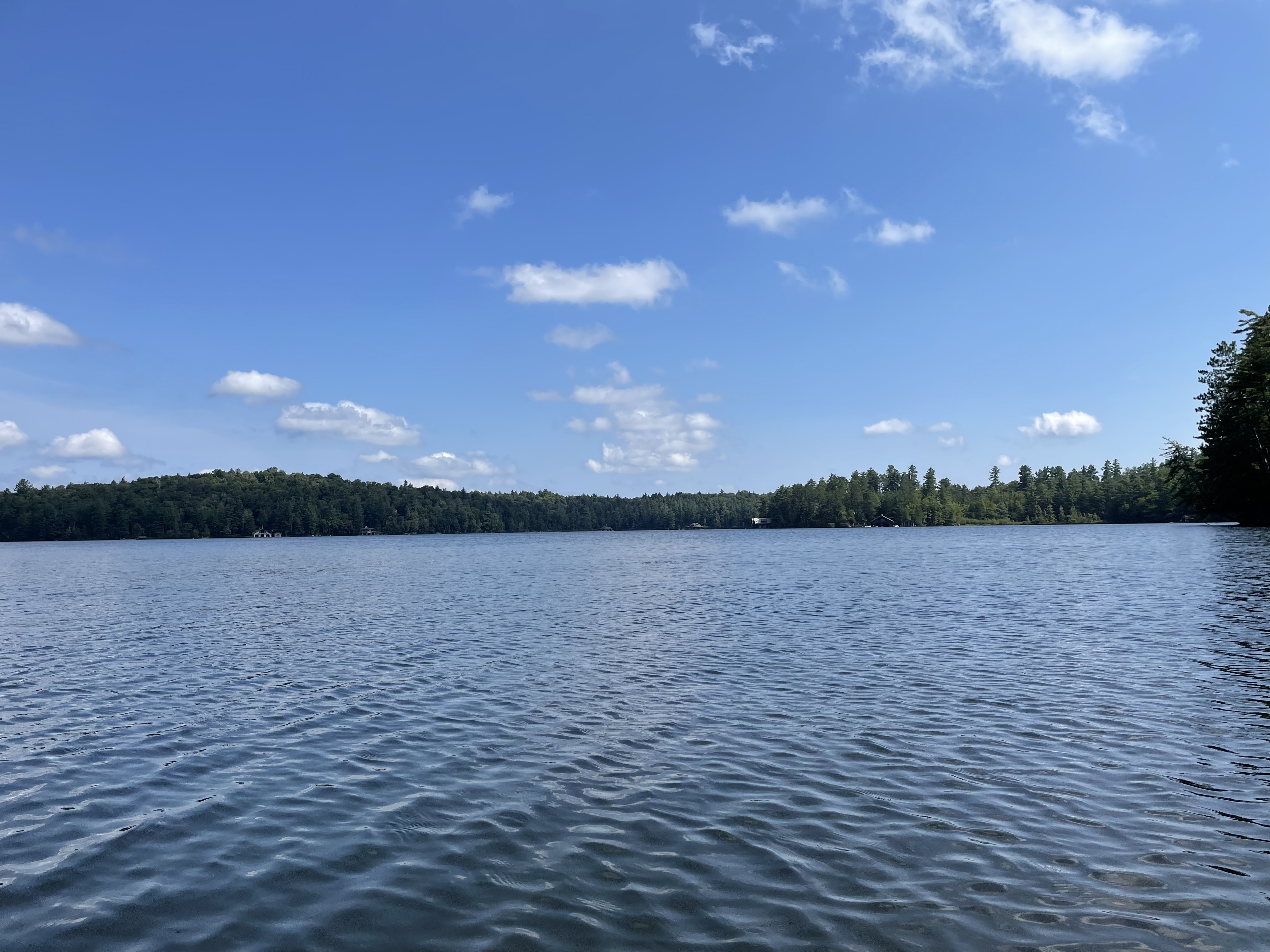 There is only one public launch spot on Upper St. Regis, and none on Spitfire, so we had our route pretty much set. We launched in the secluded little bay reserved for public car-top boats, and paddled out onto the open lake.