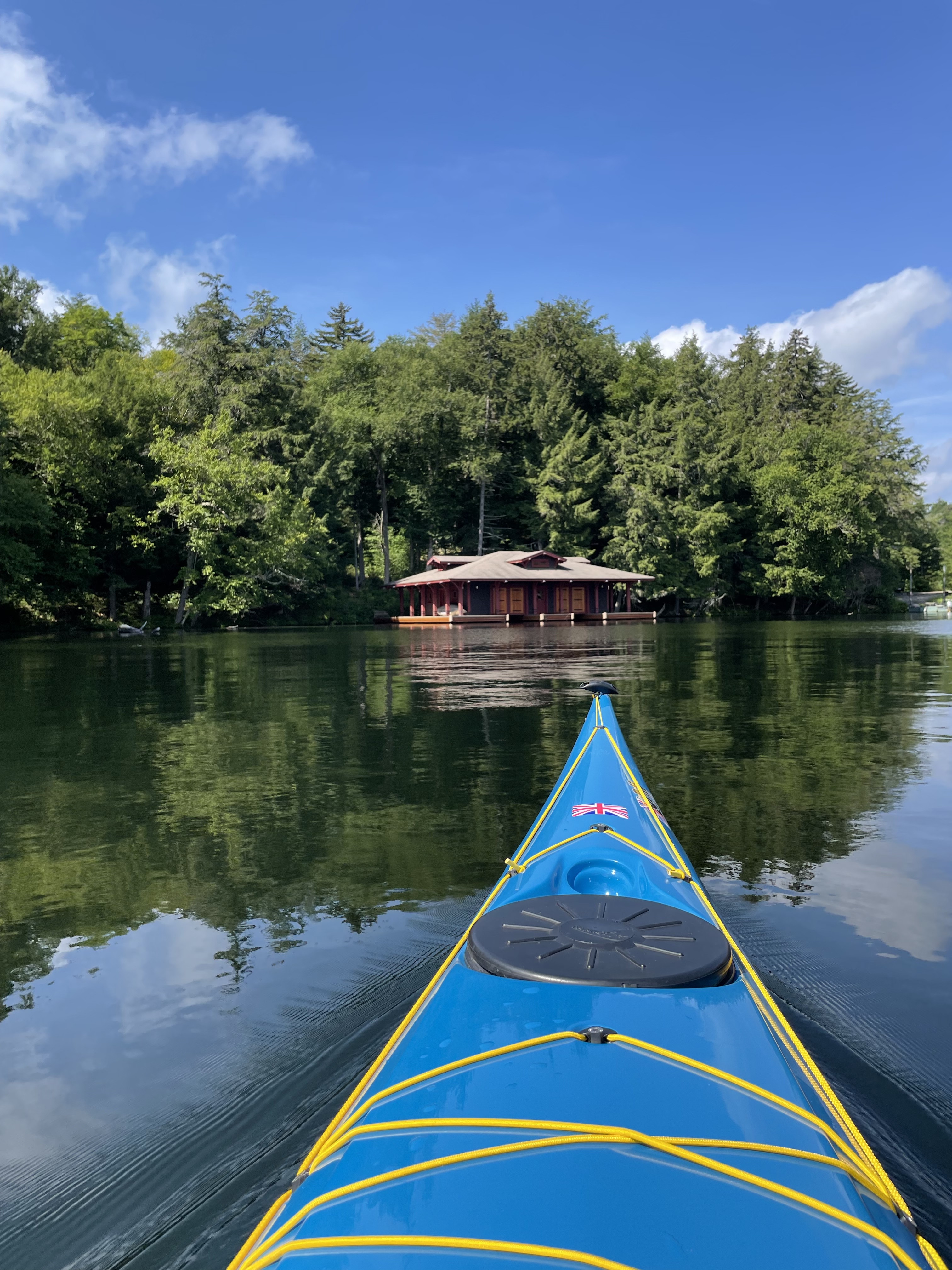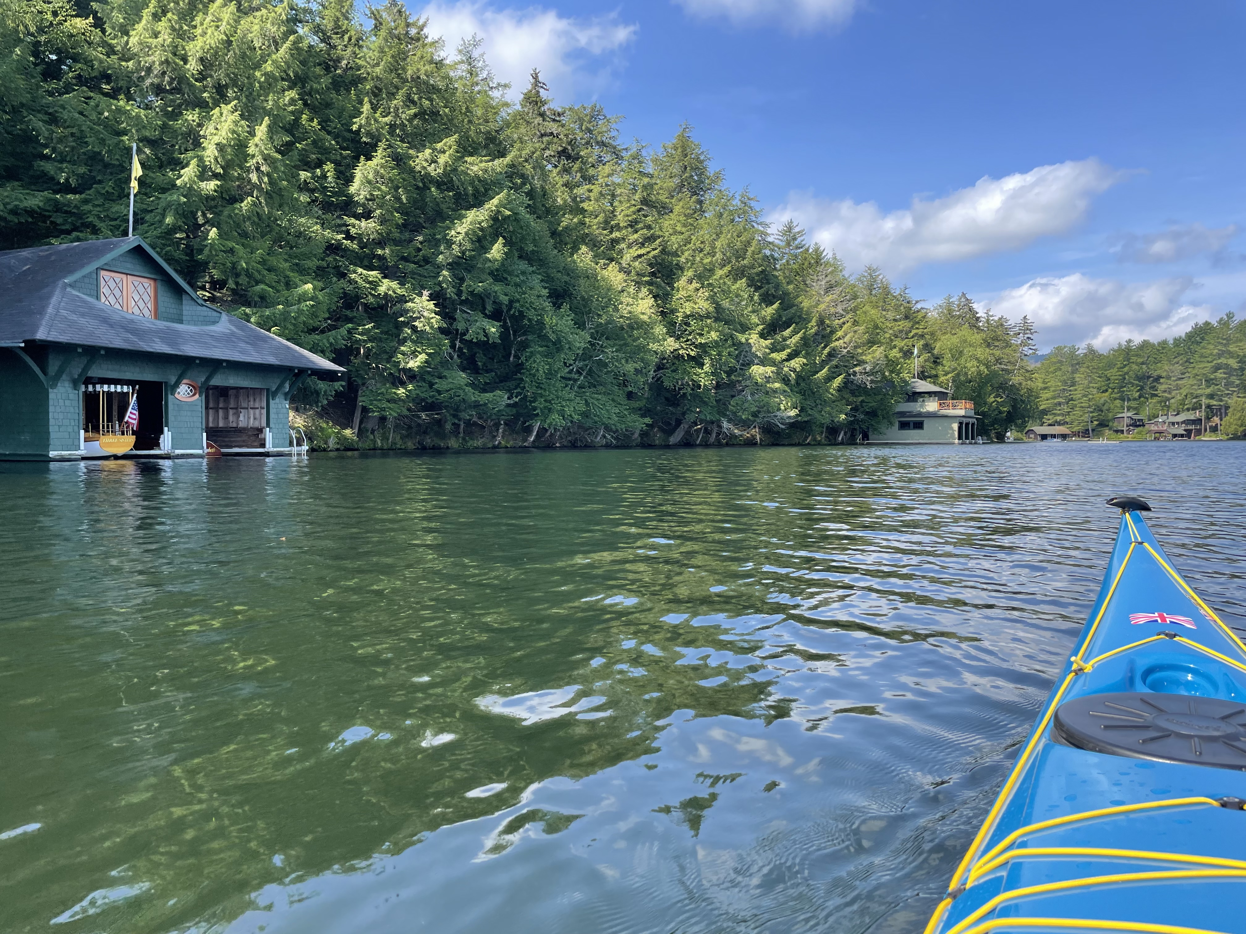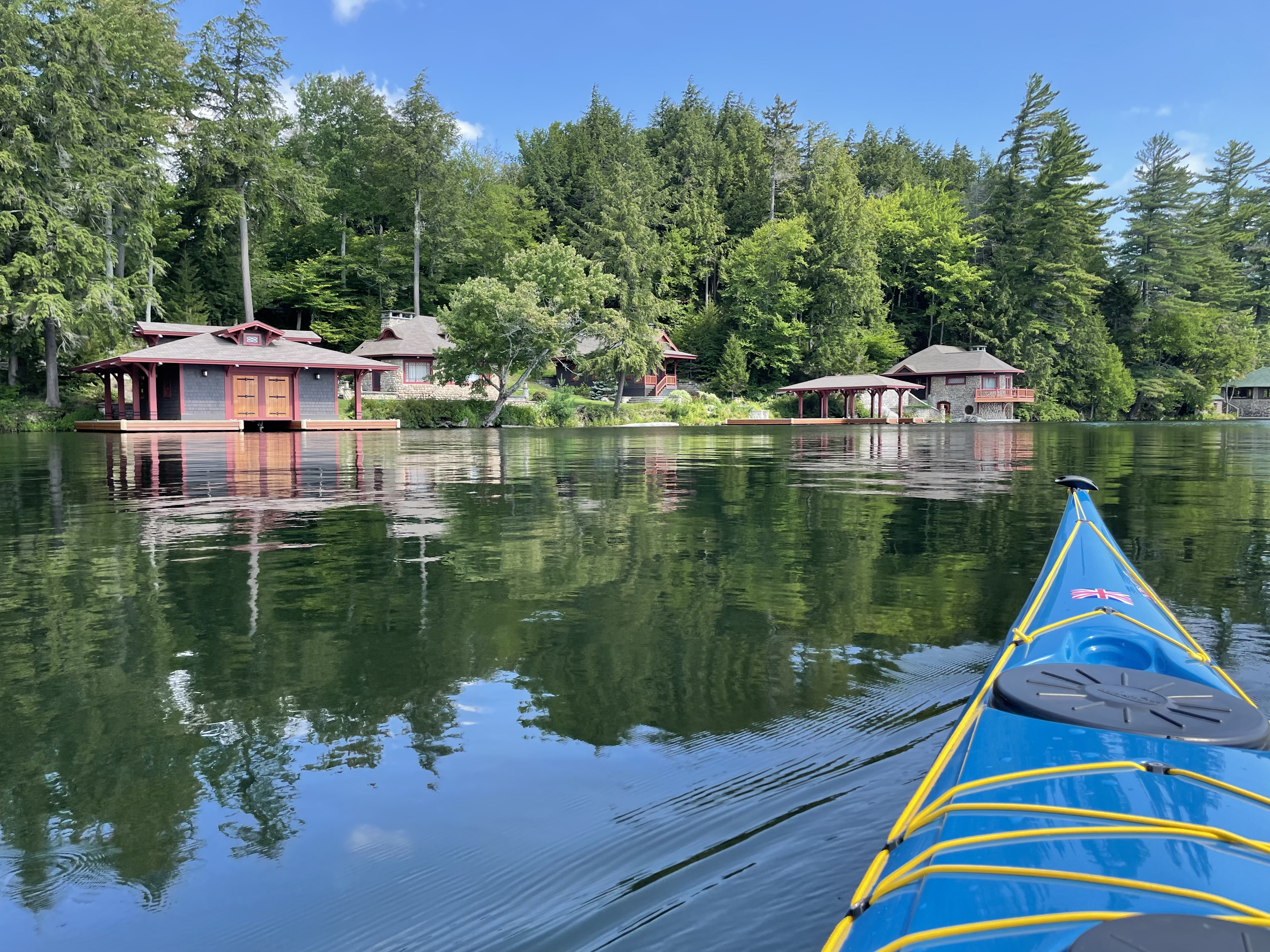 You all know how it worked out – we left the Lake George Kayak Company with two gorgeous new boats lashed to the roof of our car and immediately started planning a week’s worth of paddling. I told Steve that Upper St. Regis and Spitfire were my top priority – billed as the perfect combination of pristine, unspoilt nature and classic Adirondack architecture. We agreed to save the two lakes (which are connected by an inlet) for a special morning’s paddle on our sixteenth anniversary.