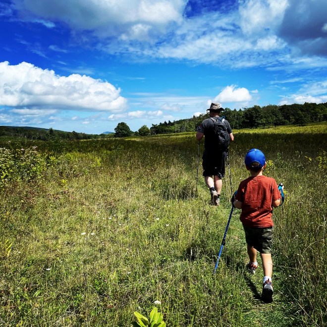 Such a gorgeous afternoon hike – there’s no end to the little herd paths and spurs branching out every which way in Big Meadows, and there’s always more to see, whether you stretch up and gaze at the mountains off in the distance or crouch down to inspect a bee or a wildflower at close range. I just love it.