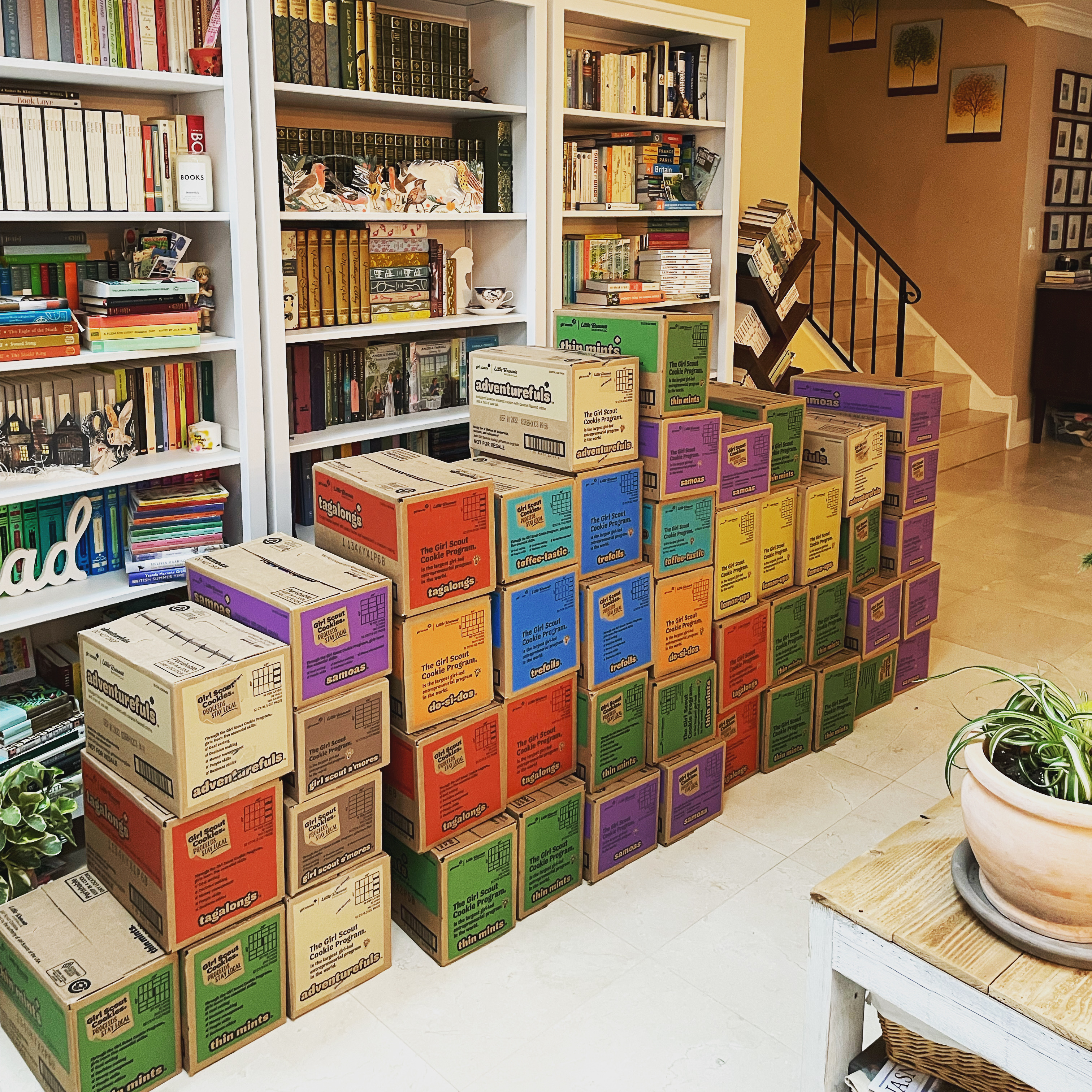 Anyway – the weekend. It was a crazy busy one. I had designs on taking Nugget skiing or at least ice skating again, but I think I knew deep down that it wasn’t going to happen; there was just way too much to do. On Friday afternoon I nipped out to a nearby park to pick up Peanut’s Girl Scout troop’s cookie order. I have never seen anything like it: I don’t say that lightly. There were tractor trailers lined up in the parking lot in a big ring, each loaded to the gills with thin mints, samoas, trefoils, and the like. I drove slowly around the ring in a line with other troop cookie managers while a volunteer walked alongside and other volunteers jumped off the backs of the rigs and loaded my open trunk with forty-seven cases of cookies. Can you believe all of that fit in my Mazda?