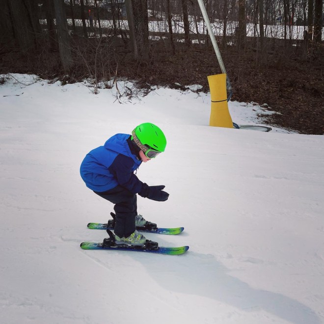 Loving. I’ve already waxed rhapsodic so I won’t go on and on, but it has been so much fun skiing with my little adventure buddy all winter! I’m constantly impressed by how game he is for literally anything, and he threw himself into mountain sports with the same energy and openness that he does everything else. (Last week he said to me, “Mama, I thought skiing would be pretty cool but then I realized that, whoa, skiing is really cool!”) In just five (or six? I’ve lost count) trips up to the mountain this winter, he’s gone from never wearing skis (well, we tried once when he was two but he cried until we took them off and he didn’t actually do any skiing, so that doesn’t count) to riding every chairlift at the mountain and confidently skiing down even long green circle runs. I’m excited for his indoor lessons all summer and already can’t wait to see what he does next winter.