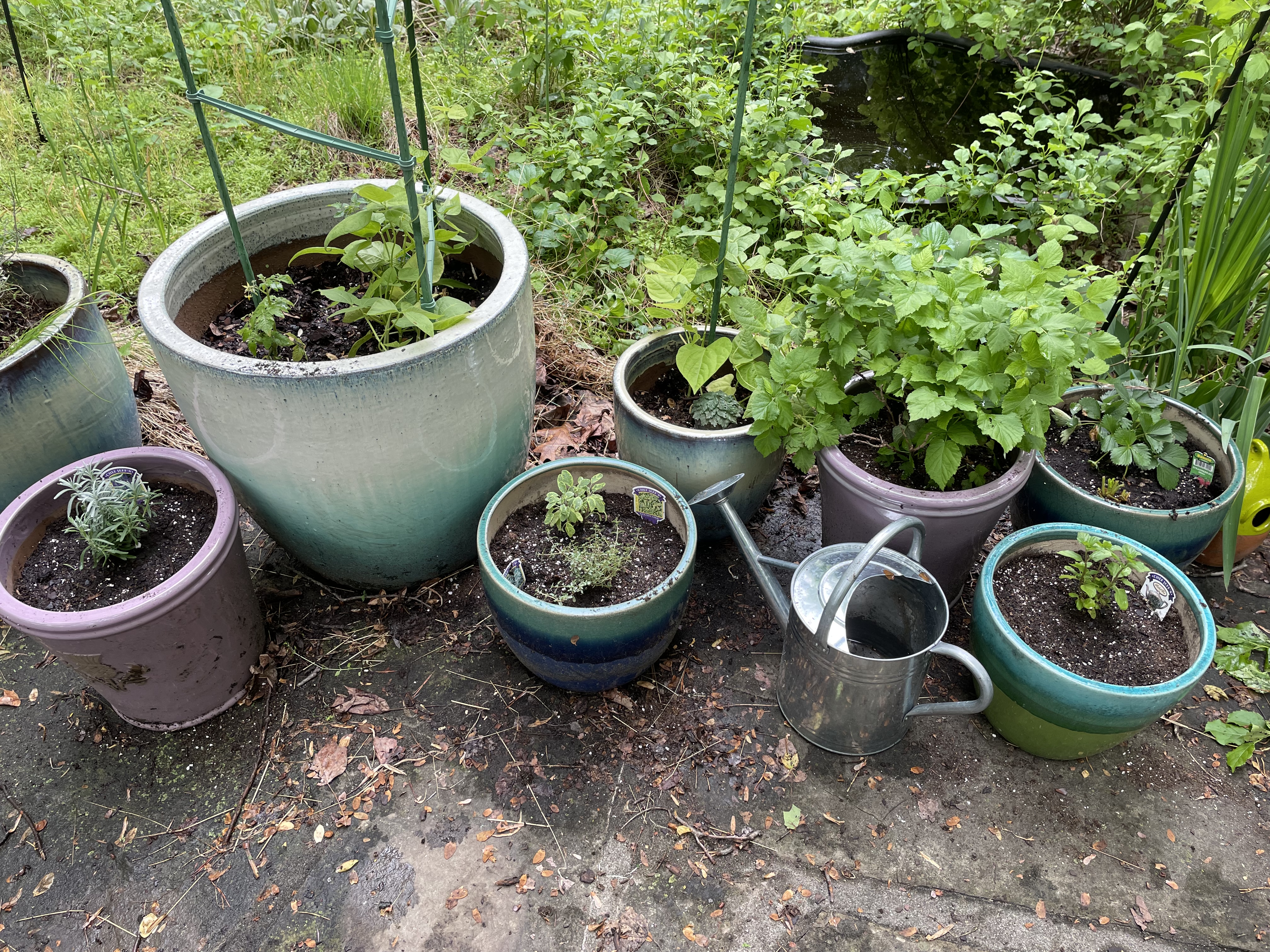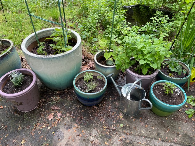 Making. No question, the best thing I made all week was this tidy garden! (Ignore the rainforest around the frog pond, that’s not part of it you guys.) Eight pots, with herbs, veggies and fruit – all clean and tidy. I cleaned up the herbs that have overwintered (out of frame to the left), pruned some yellow leaves from the tomato seedlings, and replaced the rootbound, weedy soil in the rest of the pots with a mix of organic potting soil and mushroom compost, then planted the fruit and herbs and watered everything in with a mix of rainwater (we had plenty!) and organic liquid plant food. If that doesn’t help my garden grow, I don’t know what will.