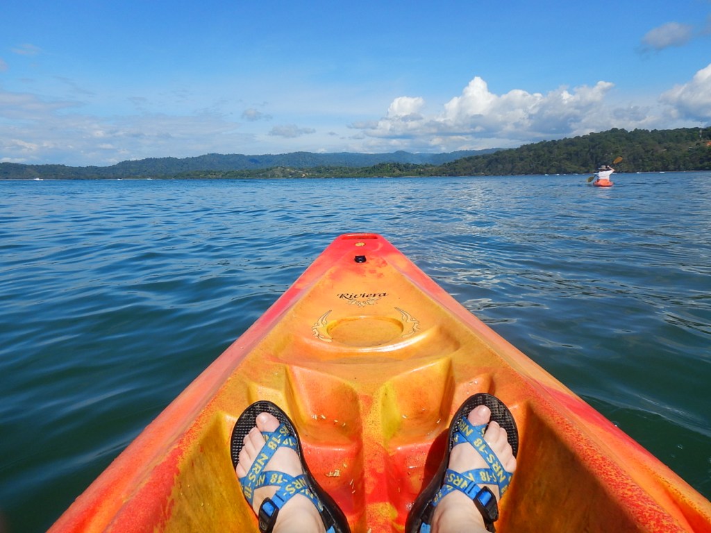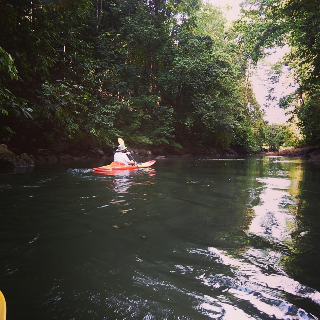 By the time we had settled in at our Osa Peninsula hotel, it was mid-afternoon and we started looking around for something to do. It was hot, and we didn’t have enough time before dinner for a full-scale expedition somewhere (even if that had been an option, which it wasn’t – excursions all took place in the mornings, to avoid the hottest part of the day). But we were itchy to start adventuring, after two days of mostly sitting around on planes. Kayaking was the obvious choice.