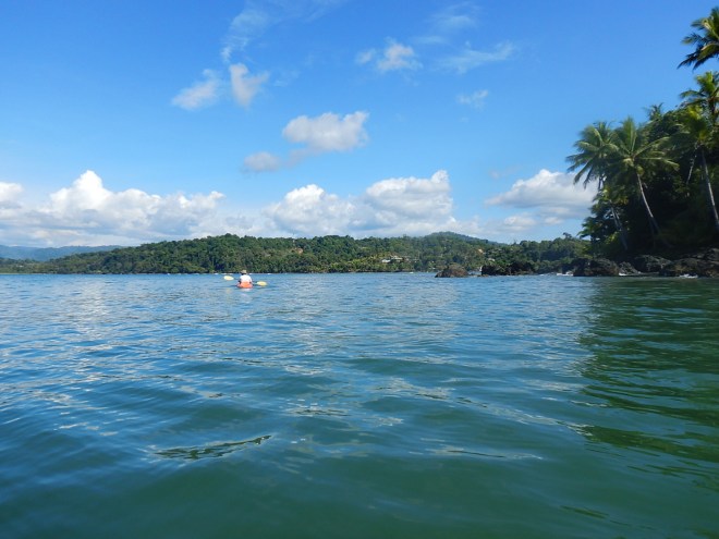 As we were paddling around, exploring the nooks and crannies of Drake Bay, it occurred to me that even though we are avid paddlers, I don’t think either of us had ever kayaked in another country before. (I may have, one time, in Mexico when I was twenty – but I’m pretty sure I snorkeled instead that afternoon.) So – our first international kayaking! Exciting stuff.