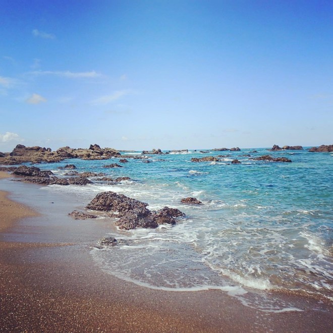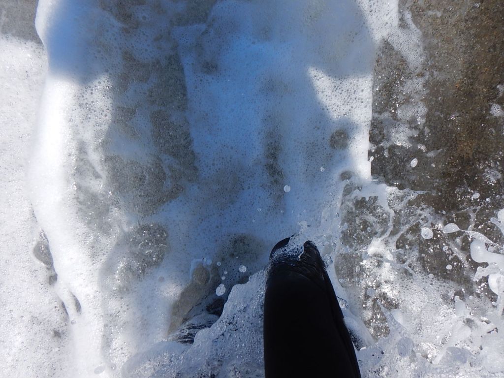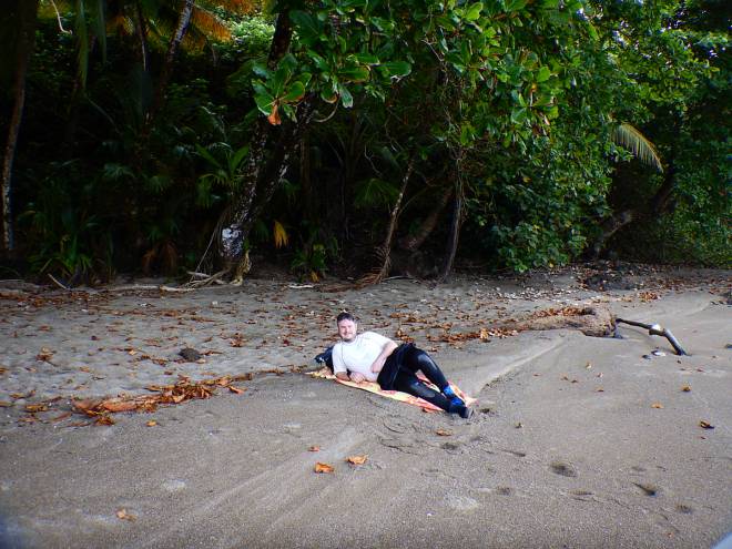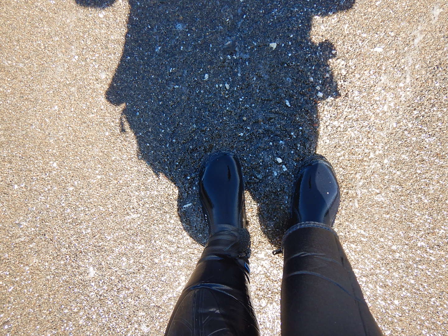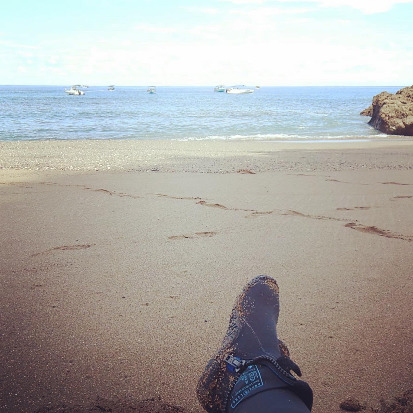 Five millimeters of neoprene, plus dive boots – I think this is the most fabric I’ve ever had on at the beach?