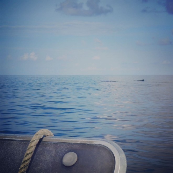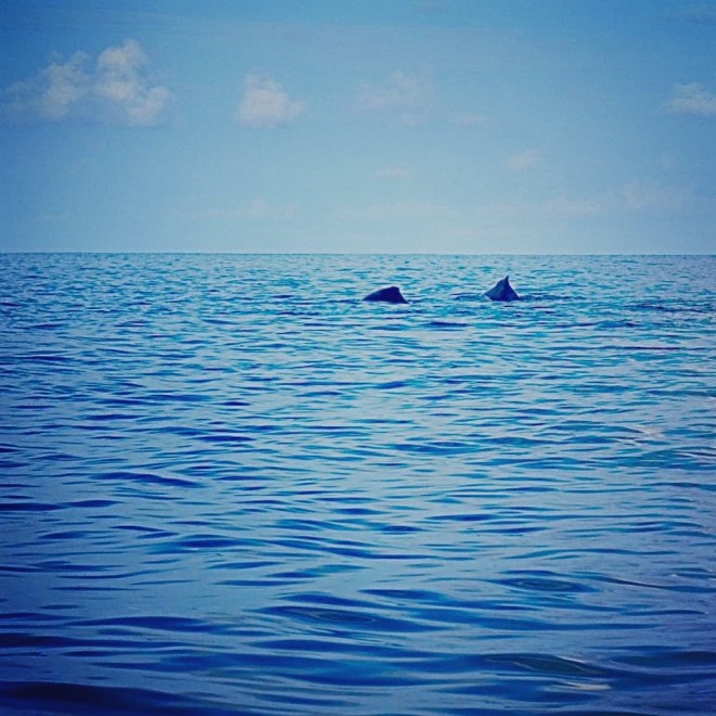 Blurry picture alert, but you can see the dorsal fin: these are pantropical spotted dolphins! A new one for my “Marine Mammals of the World” logbook. #nerdalert.