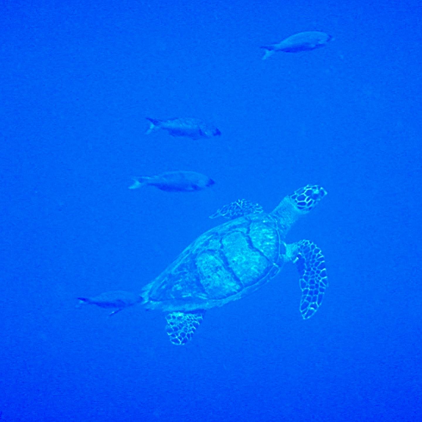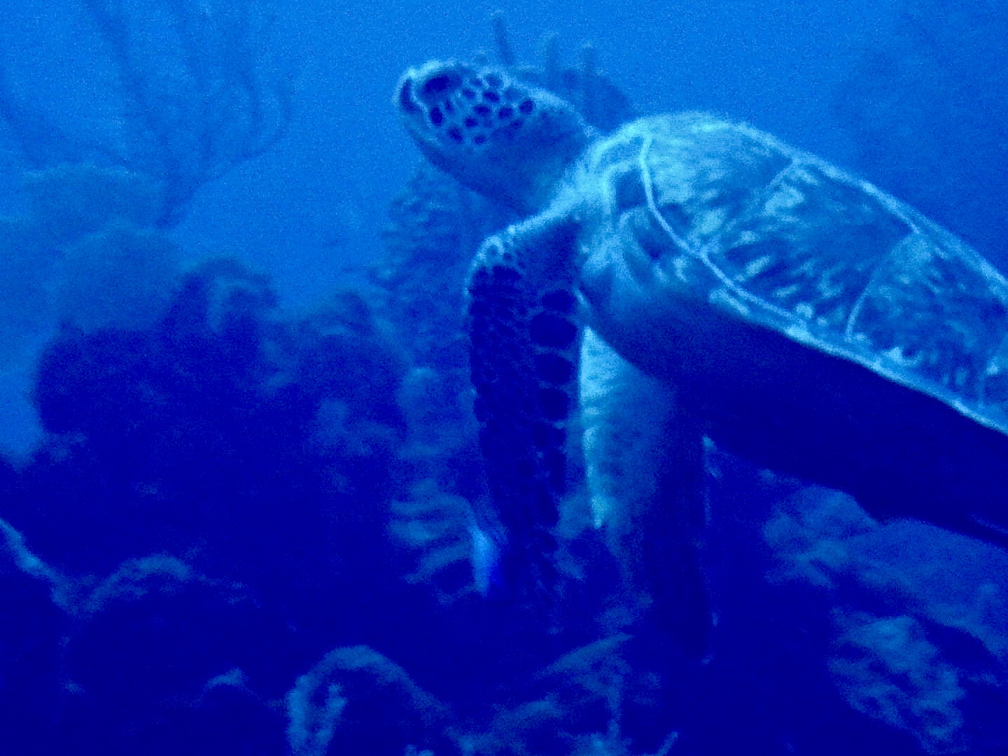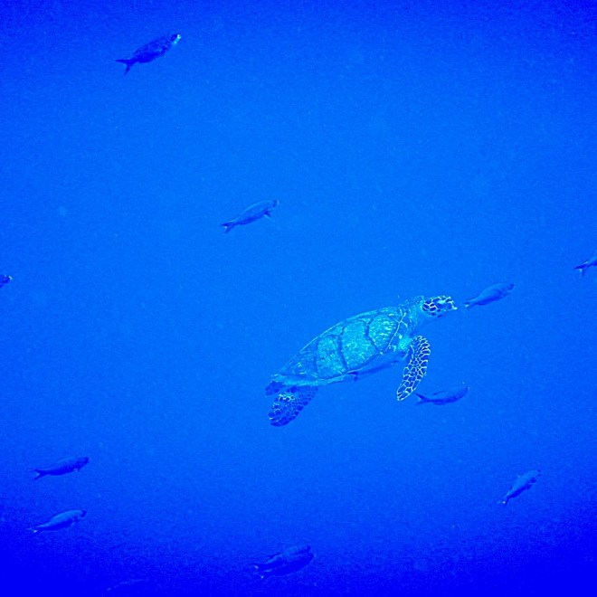 The first time we saw a sea turtle, he was a massive beastie – about the size of a Volkswagen. Even the divemaster was gobsmacked. Sadly, my camera battery was dead and my camera was chilling in my bag on the boat, waiting for a charge back at the hotel. But the sea turtles obliged by showing up three more times after that – none as big as that first guy, but still plenty exciting for all that.